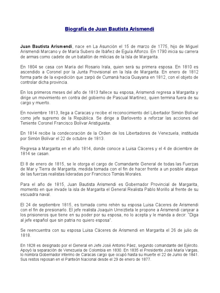 Biografia De Juan Bautista Arismendi Resumen Actualidad 24 Com from 1.bp.blogspot.com General juan bautista arismendi subero's geni profile. Arismendi was born in la asuncion, isla margarita in 1775. En 1815, juan bautista arismendi es gobernador provisional de margarita, cuando es invadida la isla por el general realista pablo morillo al frente de ese mismos año, el presidente josé maría vargas, lo nombra gobernador interino de caracas, cargo que ocupa hasta su muerte el 22 de junio de 1841. Juan bautista arismendi luisa cáceres de arismendi. El 11 de marzo de 1814, resistió heroicamente hasta ser derrotado en ocumare del tuy por en el año 1816, simón bolívar le confirió el grado de general en jefe. Juan bautista arismendi falleció en caracas, el 22 de junio de 1841. Juan bautista arismendi in myheritage family trees (lairet web site). Juan bautista arismendi falleció en caracas el 22 de junio de 1841.